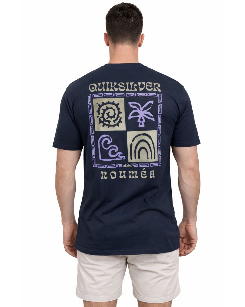 Le t-shirt Desti Bluedre apporte une vibe locale et surf signée Quiksilver, avec un visuel dos iconique revisité en version Nouméa.